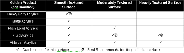 Use this Quick Reference Chart for choosing GOLDEN Acrylic Paints for Mural Use.